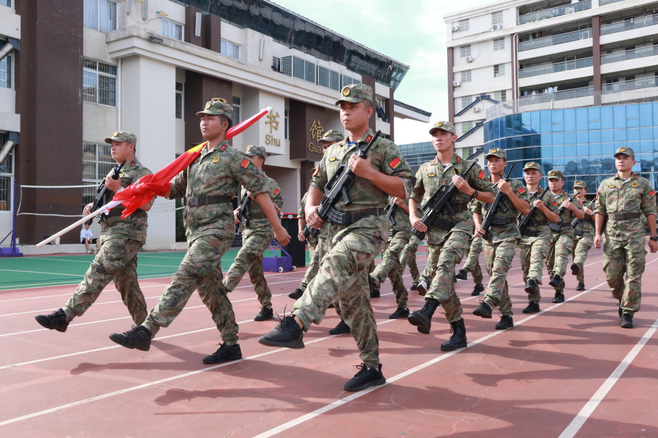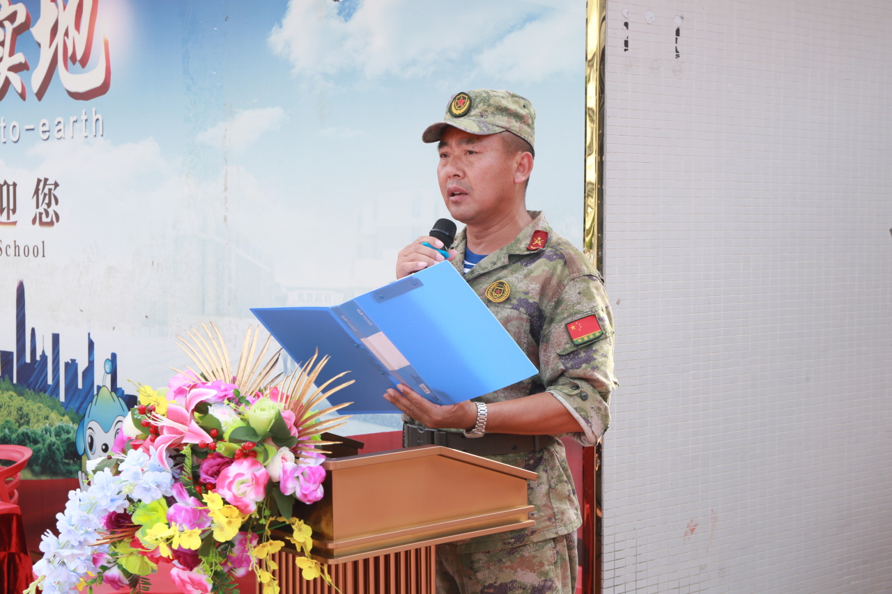? ? ? ?出席儀式的領導嘉賓有海南山高教育集團執(zhí)行董事、海口山高中學總校長洪顯平,執(zhí)行校長羅慧,以及毛坤、顏家新、易強等多位校領導與承訓總教官左運成大隊長。